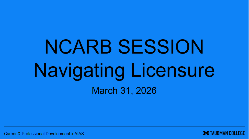 To learn more about establishing your record and the benefits of licensure, check out the content from our most recent NCARB Session on March 31, 2026. The presentation slides include a synopsis of the content discussed during the presentation session. Click the images below to access.